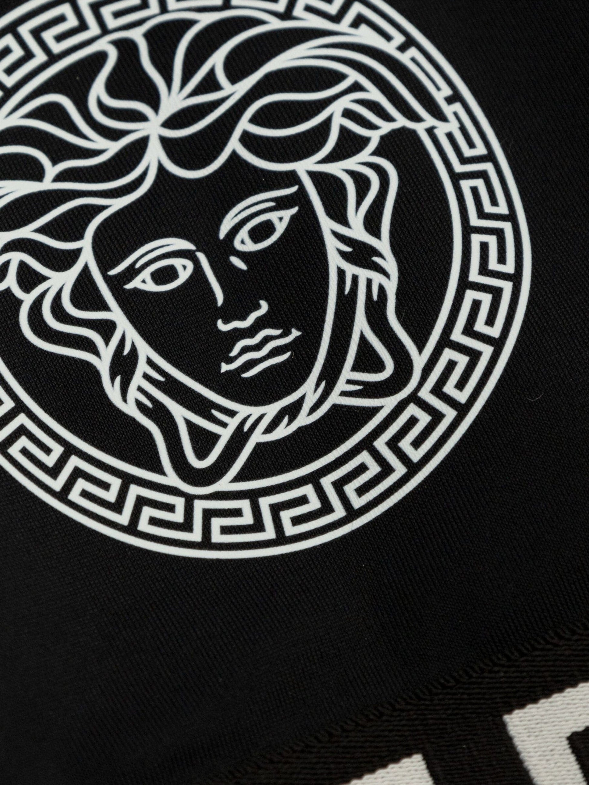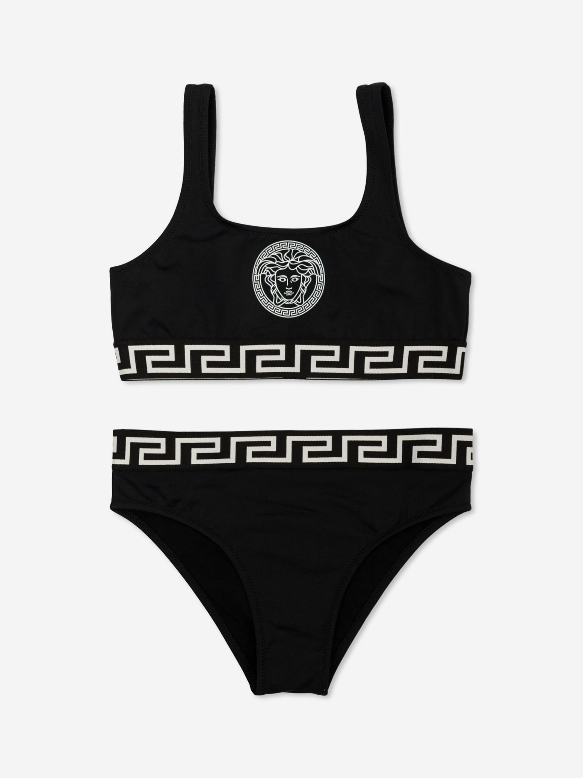 温馨提示:该商品下单后不支持取消订单,请您在购买前确认商品信息无误。商品如有缺货情况,订单会自动取消退款。预计收货时间为1至2周。 Versace envision bold, innovative abstracts in their beautifully crafted aesthetics. This girls black bikini encapsulates the Italian label's passion for daring and unparalleled technology. Envisioned in a striking black hue showcasing the Medusa head encased within a circle, adorned with a decorative Greek meander moti. It is intertwined with a white geometric pattern.
