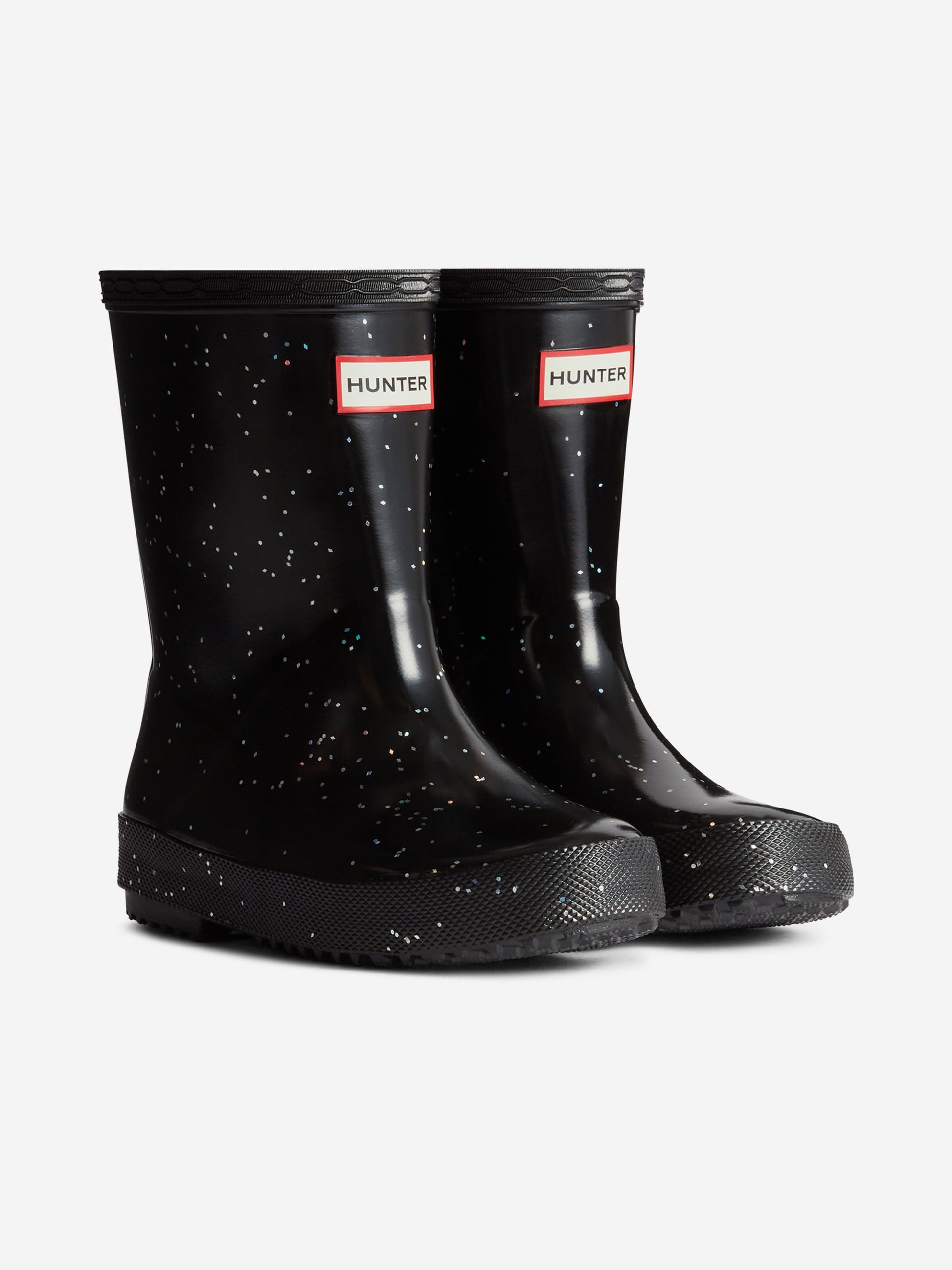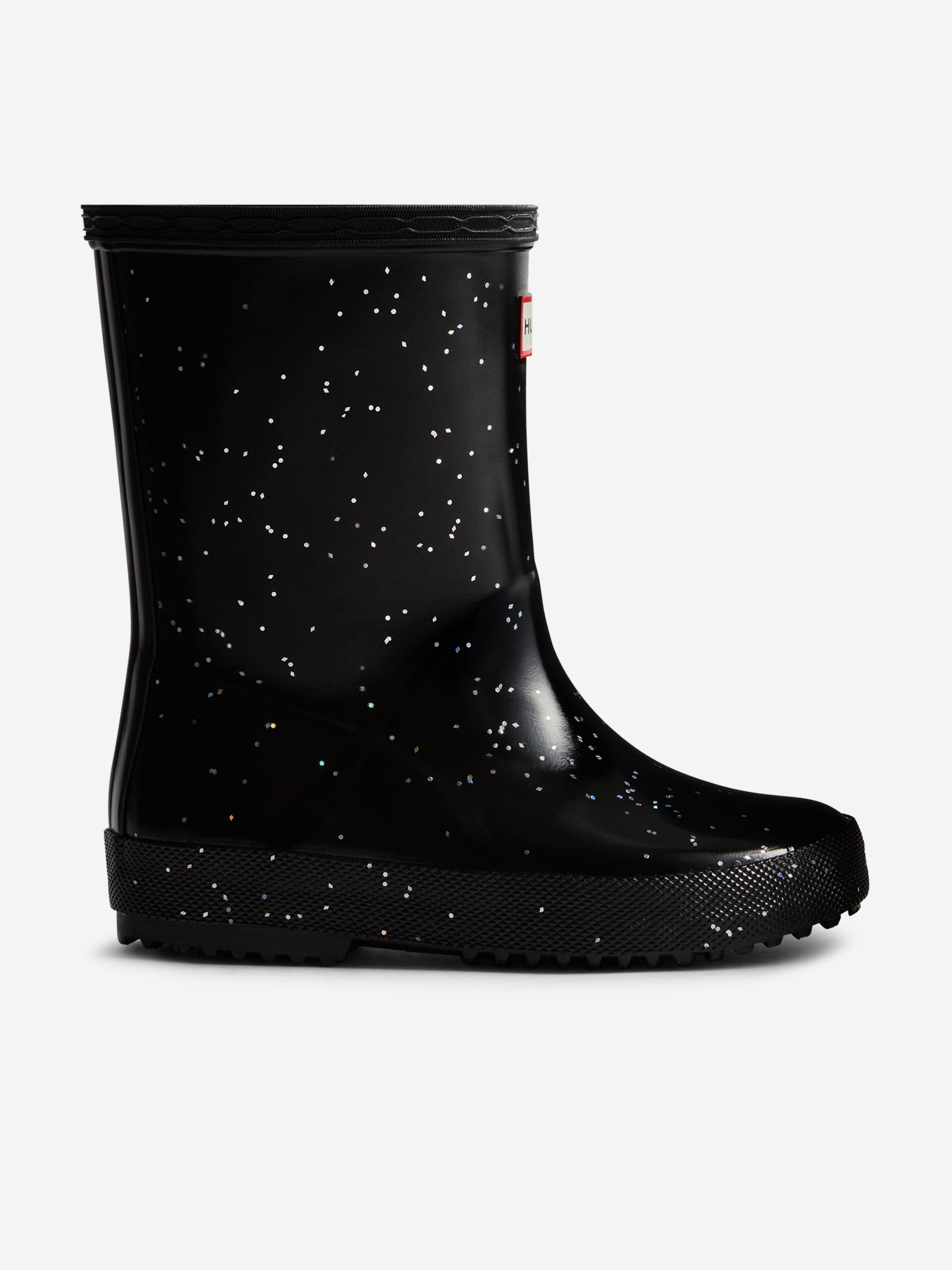 温馨提示:该商品下单后不支持取消订单,请您在购买前确认商品信息无误。商品如有缺货情况,订单会自动取消退款。预计收货时间为1至2周。 Introducing the Girls First Giant Glitter Wellington Boots in Black by Hunter — a staple for any young lady's wardrobe, suitable for wear all year round. Here are the exceptional features: