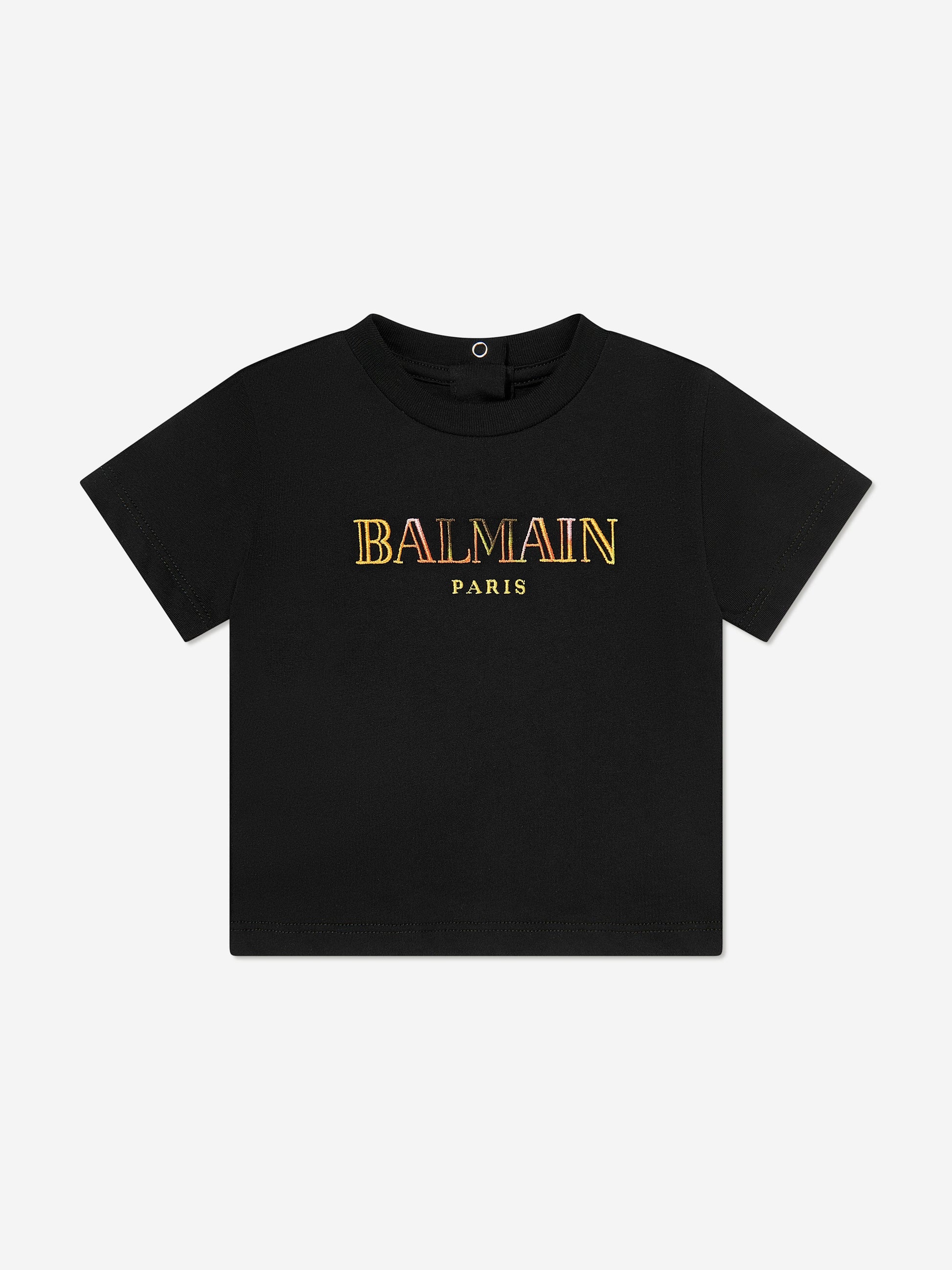 温馨提示:该商品下单后不支持取消订单,请您在购买前确认商品信息无误。商品如有缺货情况,订单会自动取消退款。预计收货时间为4至6周。 Balmain embody distinctive Parisian sensibilities in their immaculate designs. This baby unisex black short sleeve t-shirt is woven in beautiful high quality cotton. It showcases multicoloured embroidery at the centre front with a snap button closure for a smart and comfortable fit.