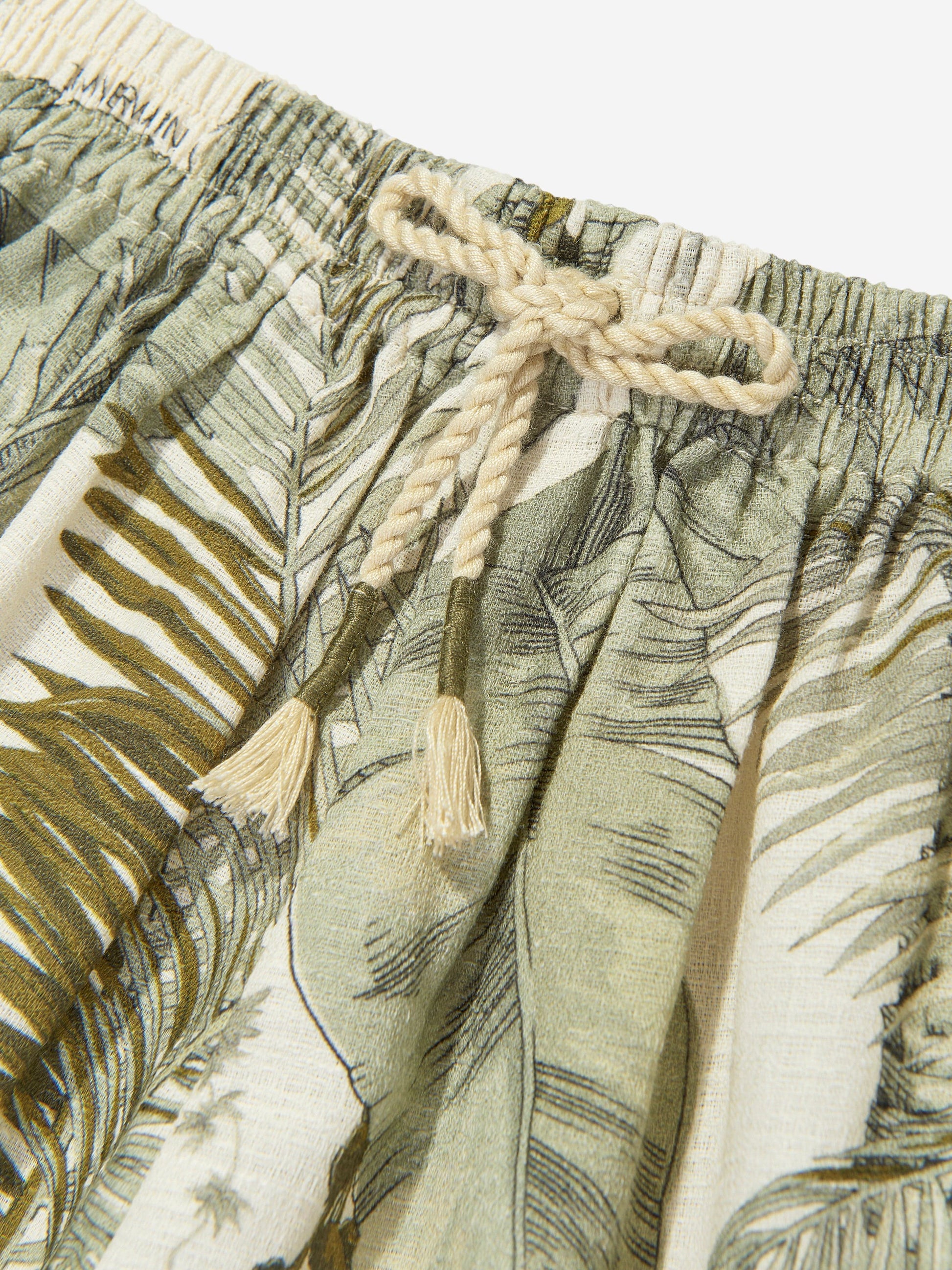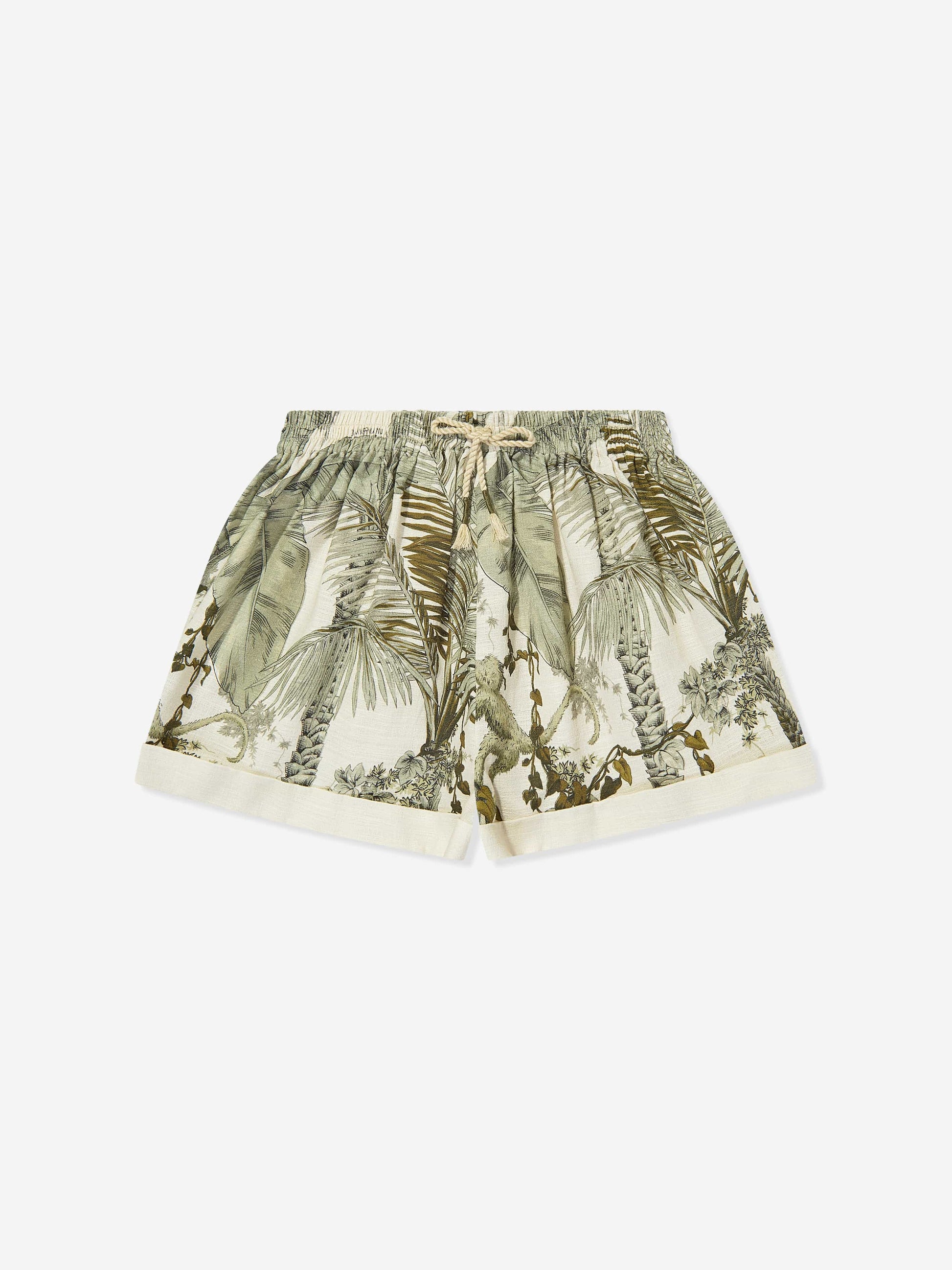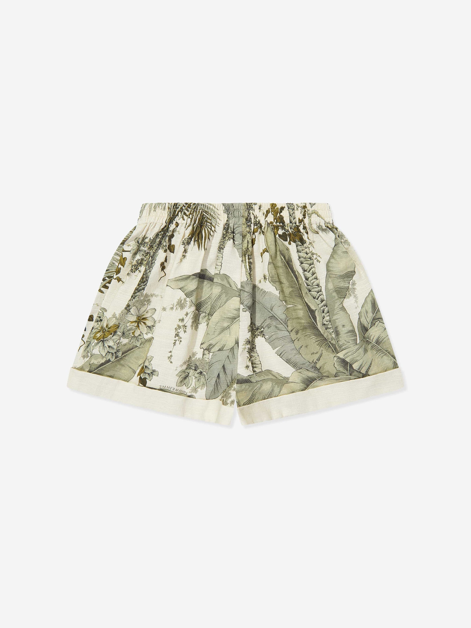温馨提示:该商品下单后不支持取消订单,请您在购买前确认商品信息无误。商品如有缺货情况,订单会自动取消退款。预计收货时间为4至6周。 Australian label Zimmermann combine superior cutting with spellbinding silhouettes. These girls Wylie relaxed shorts capture the brand's Bohemian essence within high quality and superior resort wear. Engineered in a light green hue with a botanical print inspired by nature. It has an elasticated drawstring waistband with a stone contrasting trim.