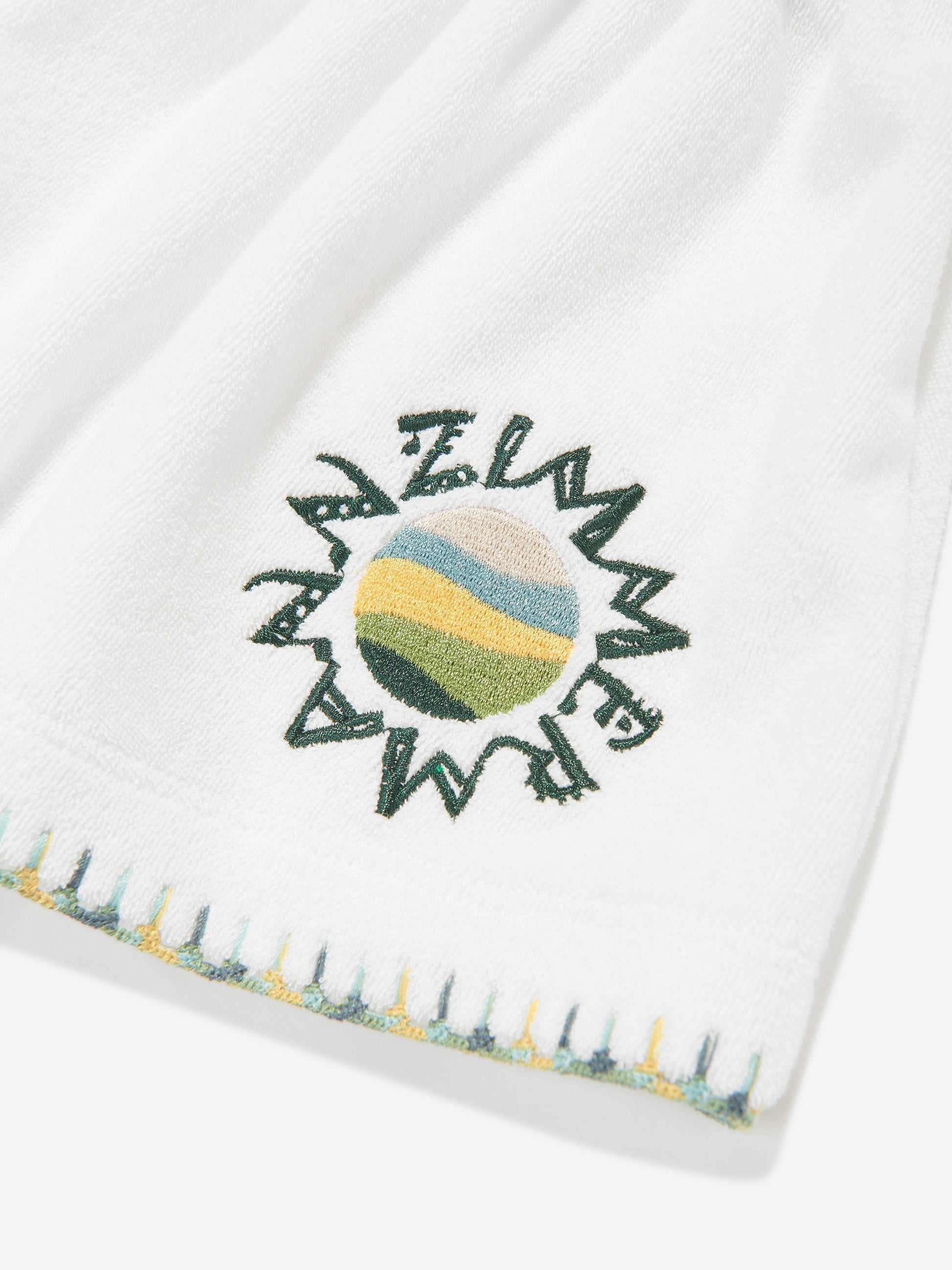 温馨提示:该商品下单后不支持取消订单,请您在购买前确认商品信息无误。商品如有缺货情况,订单会自动取消退款。预计收货时间为4至6周。 Australian label Zimmermann create their own unparalleled preferences for colour and craftsmanship. These girls tallow terry shorts capture the label's dedication to high quality and distinctive concepts. Woven in soft cotton towelling. They feature an embroidered green logo design and coordinating green and yellow trims. The waistband is elasticated with a fixed bow on the front for an easy fitting.