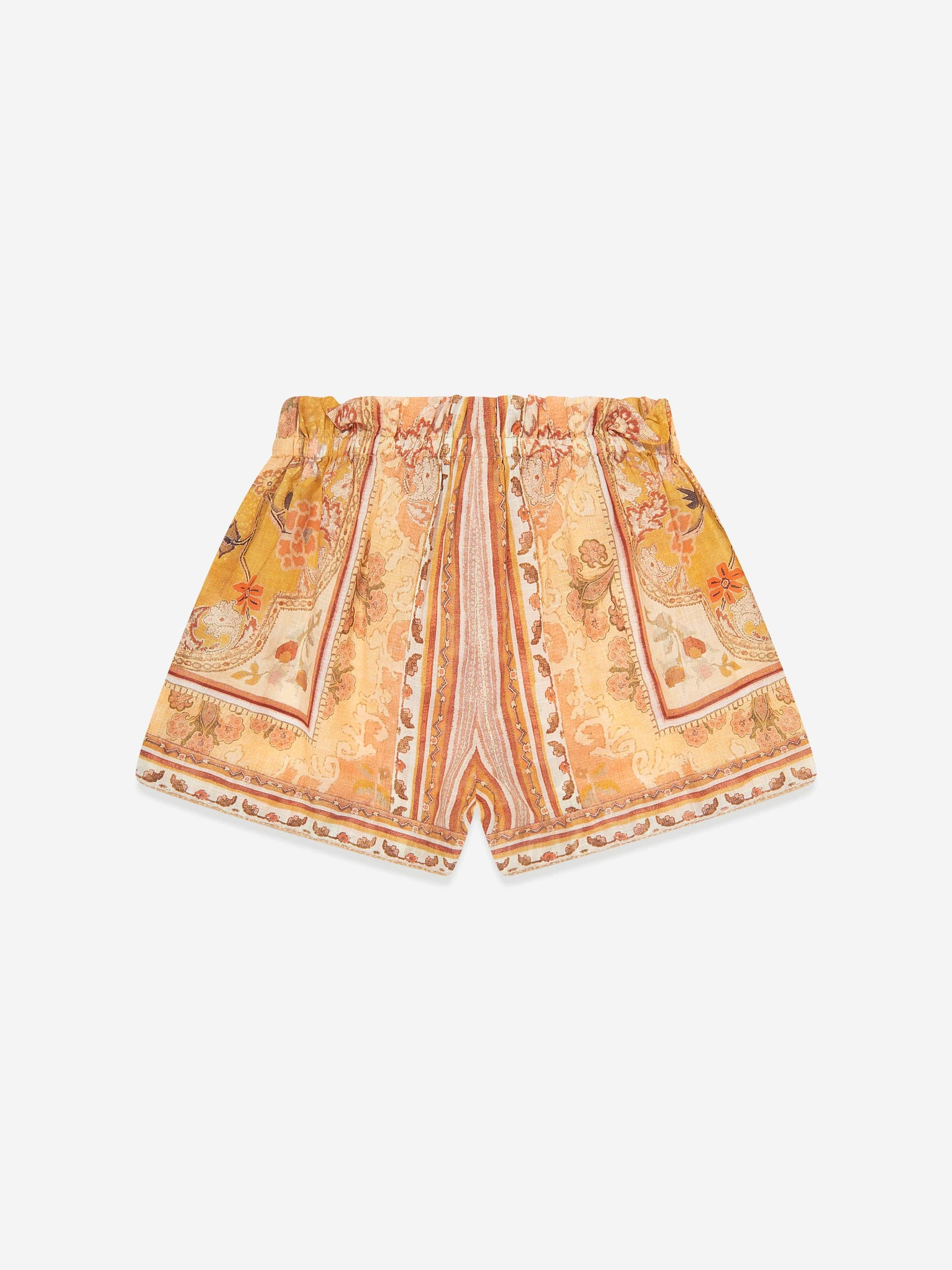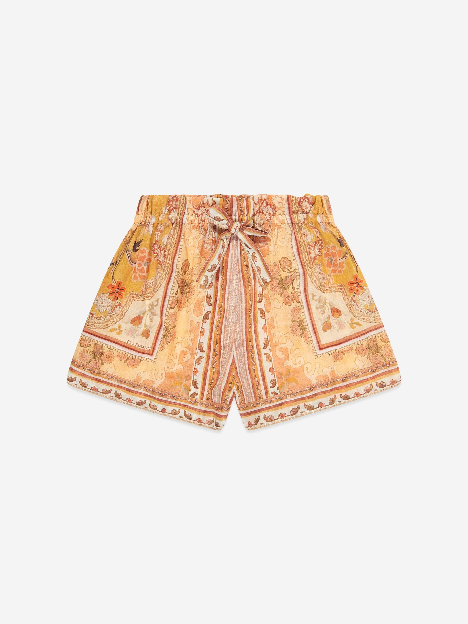 温馨提示:该商品下单后不支持取消订单,请您在购买前确认商品信息无误。商品如有缺货情况,订单会自动取消退款。预计收货时间为4至6周。 Australian label Zimmermann redefine the strategy of fashion by exploring their own identity that is neither trend-driven nor futuristic. These girls Wylie shorts are woven in beautiful lightweight cotton in orange, beige and yellow shades, with a refined vintage style print. They are soft and semi-sheer, showcasing an elasticated waistband and tie detail.