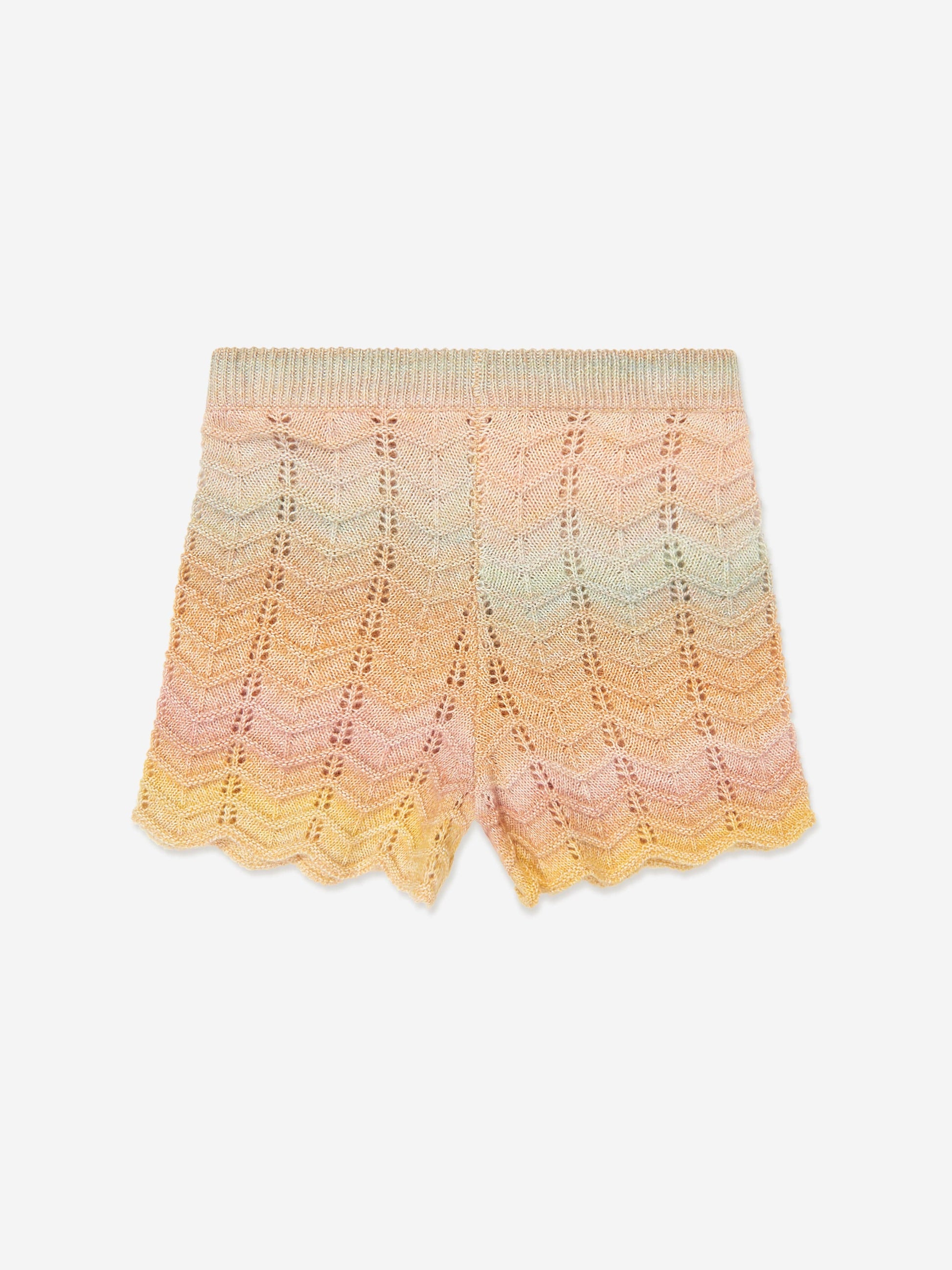 温馨提示:该商品下单后不支持取消订单,请您在购买前确认商品信息无误。商品如有缺货情况,订单会自动取消退款。预计收货时间为4至6周。 Australian label Zimmermann combine superior cutting with spellbinding silhouettes. These girls tallow chevron knit shorts capture the brand's Bohemian essence within high quality and superior resort wear. Woven in a beautiful knitted design via scalloped edges, an elasticated waist, and fixed bow detailing.