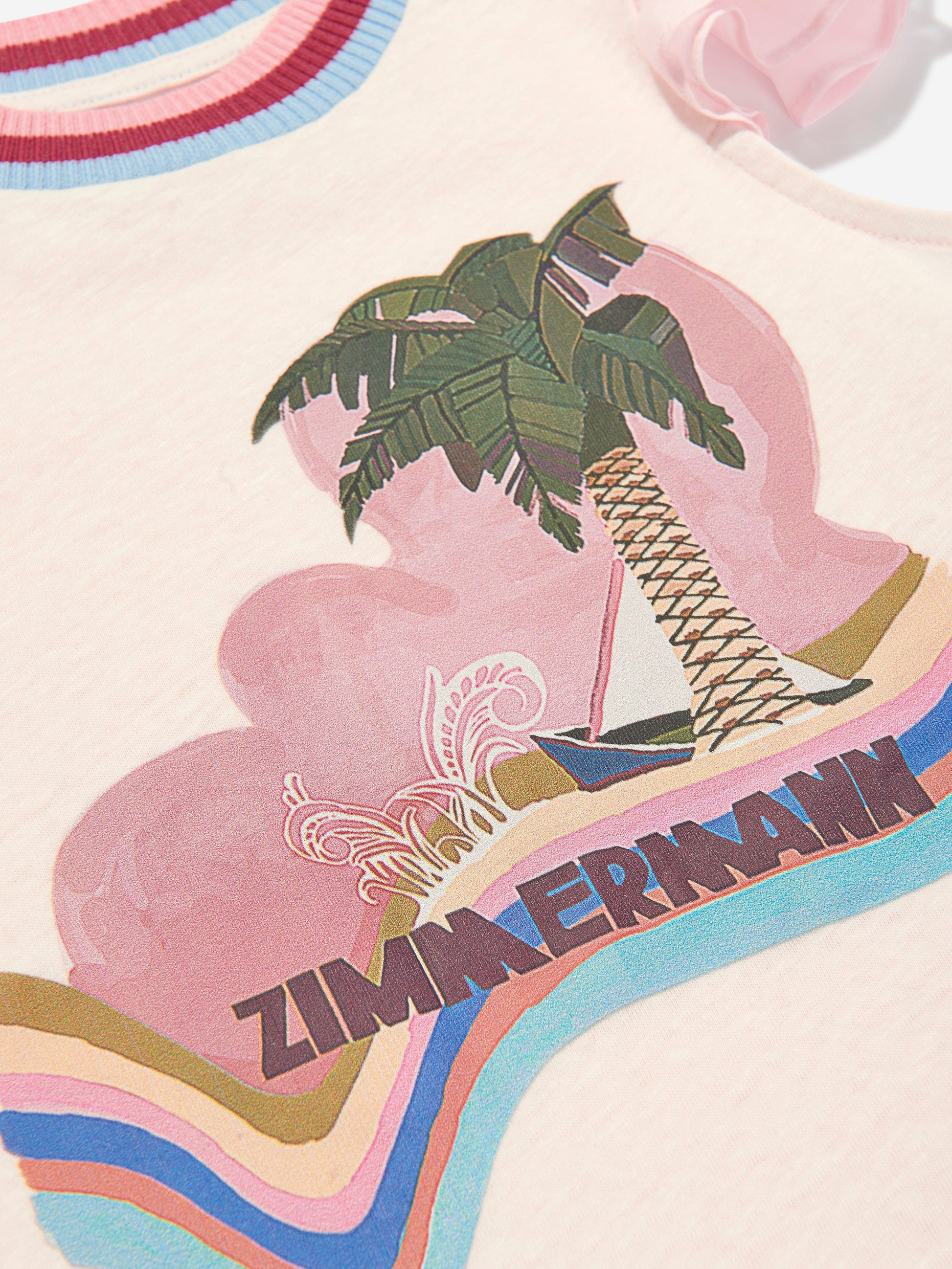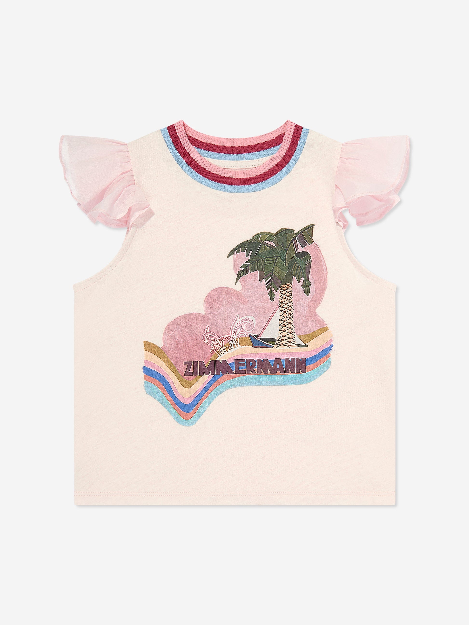 温馨提示:该商品下单后不支持取消订单,请您在购买前确认商品信息无误。商品如有缺货情况,订单会自动取消退款。预计收货时间为4至6周。 Zimmermann's intricate eye for detail and colour are amplified in this girls Everley frill sleeve t-shirt. Depicted in a colourblock patchwork style with floral patterning, the design embodies high quality and a deconstruction of trends. Showcases short ruffled sleeves, a tropical palm tree and yacht print.