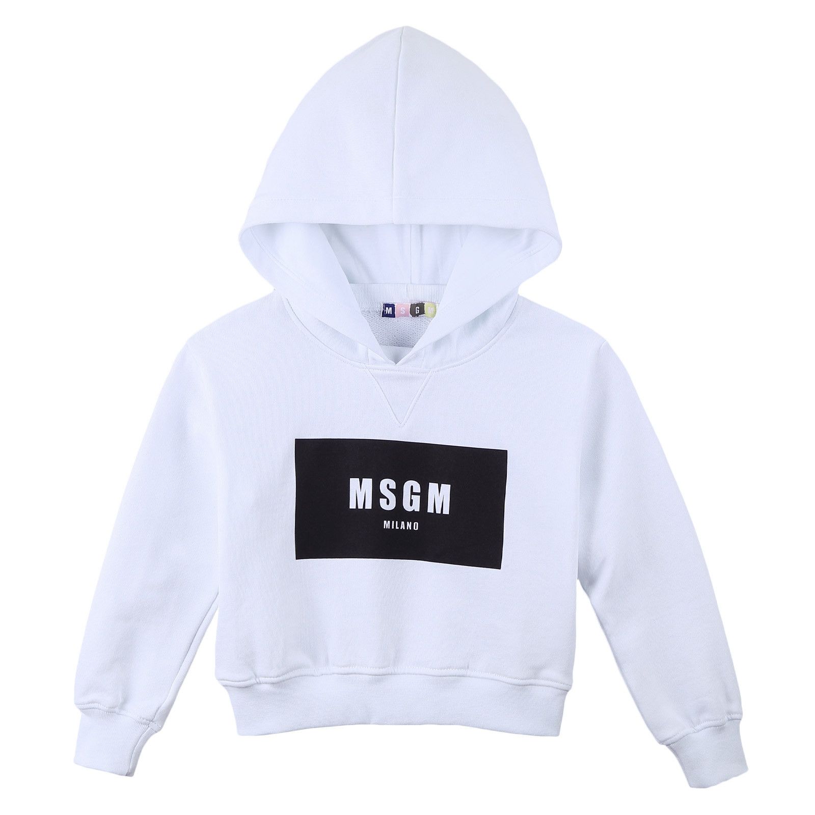 Girls White Cotton Hooded Sweater With Brand Name Logo
